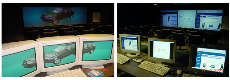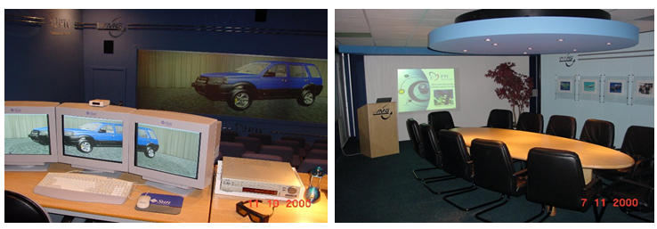 Once we had the demonstrations built we then needed suitable demonstration environments in which to present them. Building on the EPD Centre that I set up in the PTC Coventry office, we worked in partnership with Warwick Manufacturing Group to convert one of their lecture theatres into a high end presentation facility. This particular facility was co-sponsored with Sun Microsystems who at the time wanted to showcase their new high end visualisation servers. The lecture theatre was completely gutted and we installed a rear projected, 6m wide screen that allowed us to show multi-role presentations across the same screen. The centre ran successfully for two years and we had over a 100 executive level meetings over this time period.