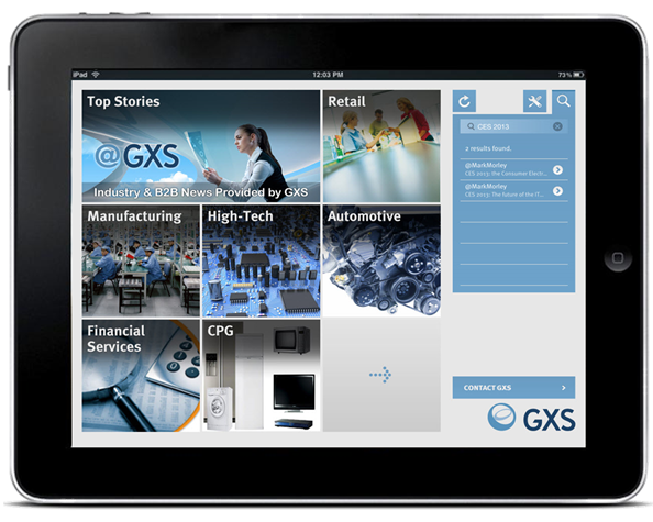 I looked around the market to find a suitable mobile app development agency that I could work with. I chose UK based Locassa to help me develop the GXS Industry focused mobile app. The app was very simple to use and relied on a hashtag coding system to help the app decide where to place specific industry content. For example automotive tweets would include #auto and technology focused tweets would include #tech hashtags. The app would then read various GXS industry twitter feeds, extract the relevant tweet content and then populate the relevant industry section within the app.