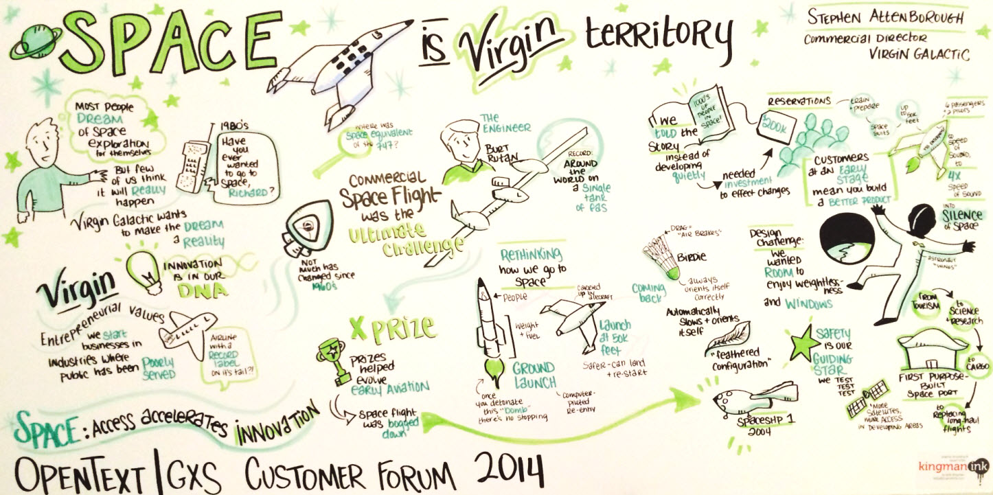 Through my work on my dissertation I contacted Virgin Galactic to see if they would be available to present at the OpenText GXS Customer Forum in March 2014. Stephen Attenborugh, employee number one of Virgin Galactic and Commercial Director, provided an inspiring presentation on how Virgin Galactic has evolved over the years. Virgin Galactic plans to take its first paying space tourists in late 2014.